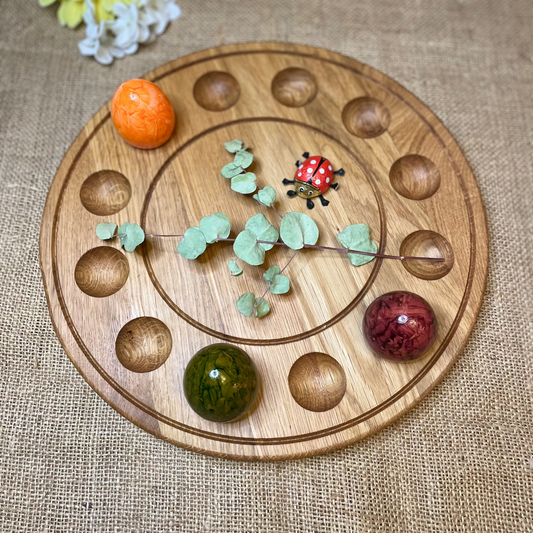 Eierplatte aus Eichenholz – Eierteller für 12 Eier mit zentraler Kuchenmulde (Ø 30 cm)