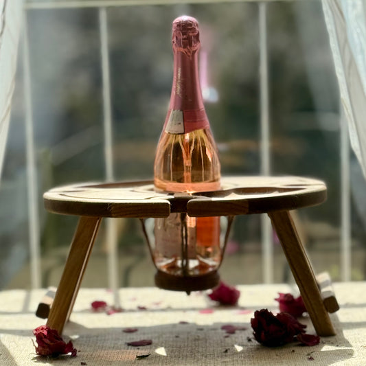 Klappbarer Weintisch aus Nussbaum – Handgefertigtes Serviertablett für Picknick & Zuhause