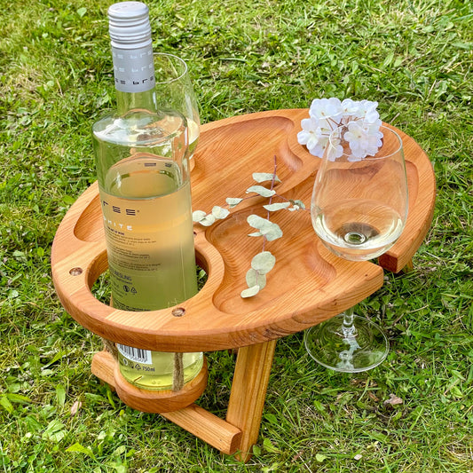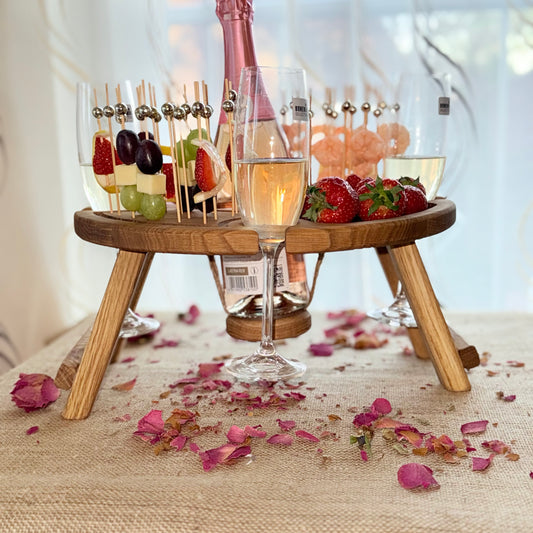 Personalisierter Klappbarer Weintisch aus Eichenholz – Perfekt für Picknick, Camping & besondere Anlässe