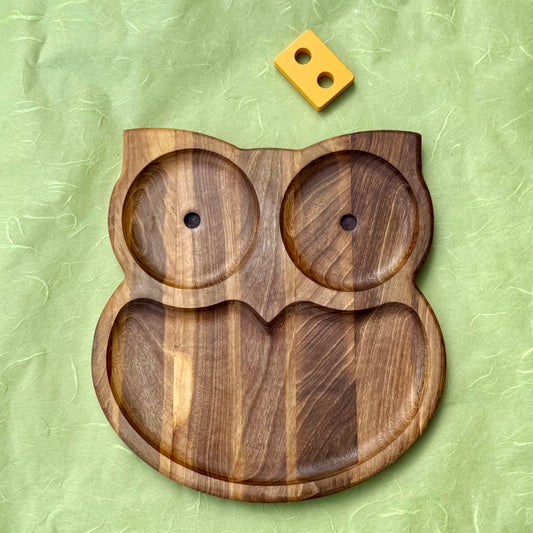 Kinderteller aus Eichen- oder Eschenholz – Eulenform, nachhaltig & bruchsicher