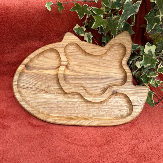 Kinderteller aus Eichenholz – Tiermotiv, mit Fächern & abgerundeten Kanten