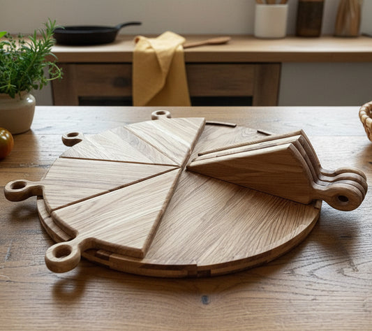 Pizzabrett aus Eichenholz mit 8 abnehmbaren Brettchen – Rundes Servierbrett für stilvolles Anrichten