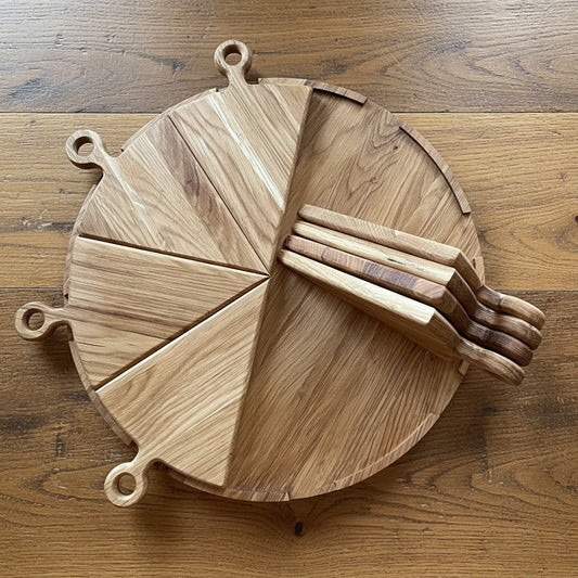 Pizzabrett aus Eichenholz mit 8 abnehmbaren Brettchen – Rundes Servierbrett für stilvolles Anrichten