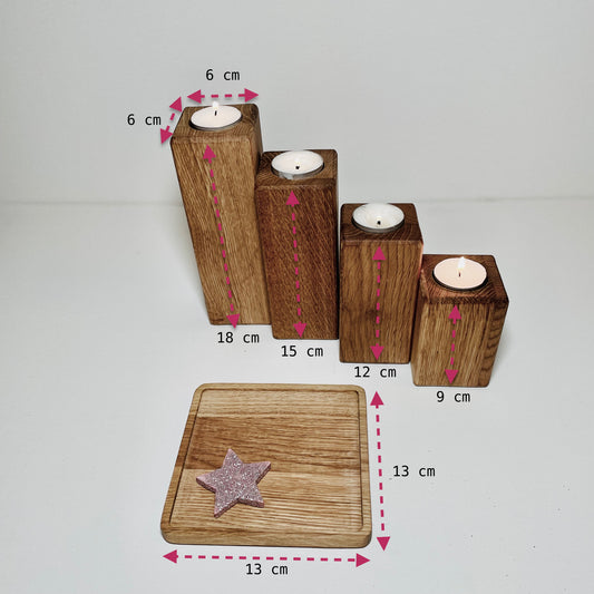 Adventskranz aus Eichenholz – 4er-Kerzenhalter-Set mit Unterbrett für Teelichter
