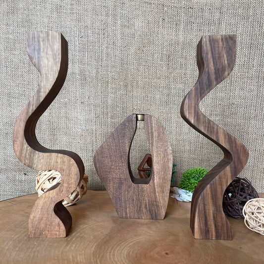 Kerzenhalter 3er-Set aus Nussbaumholz – Handgefertigte Holzkerzenständer im Vintage-Stil