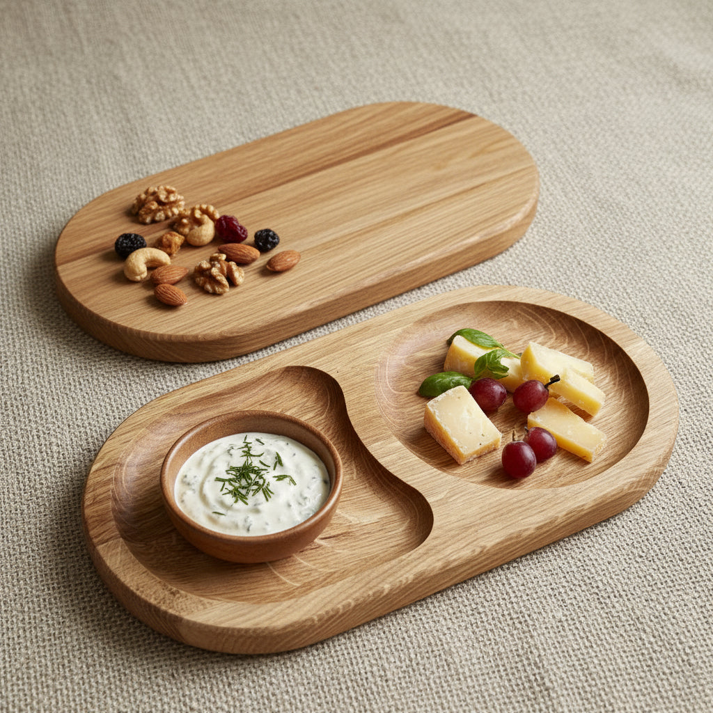 Servierteller aus Eichenholz – Flacher Holzteller mit 2 oder 3 Fächern