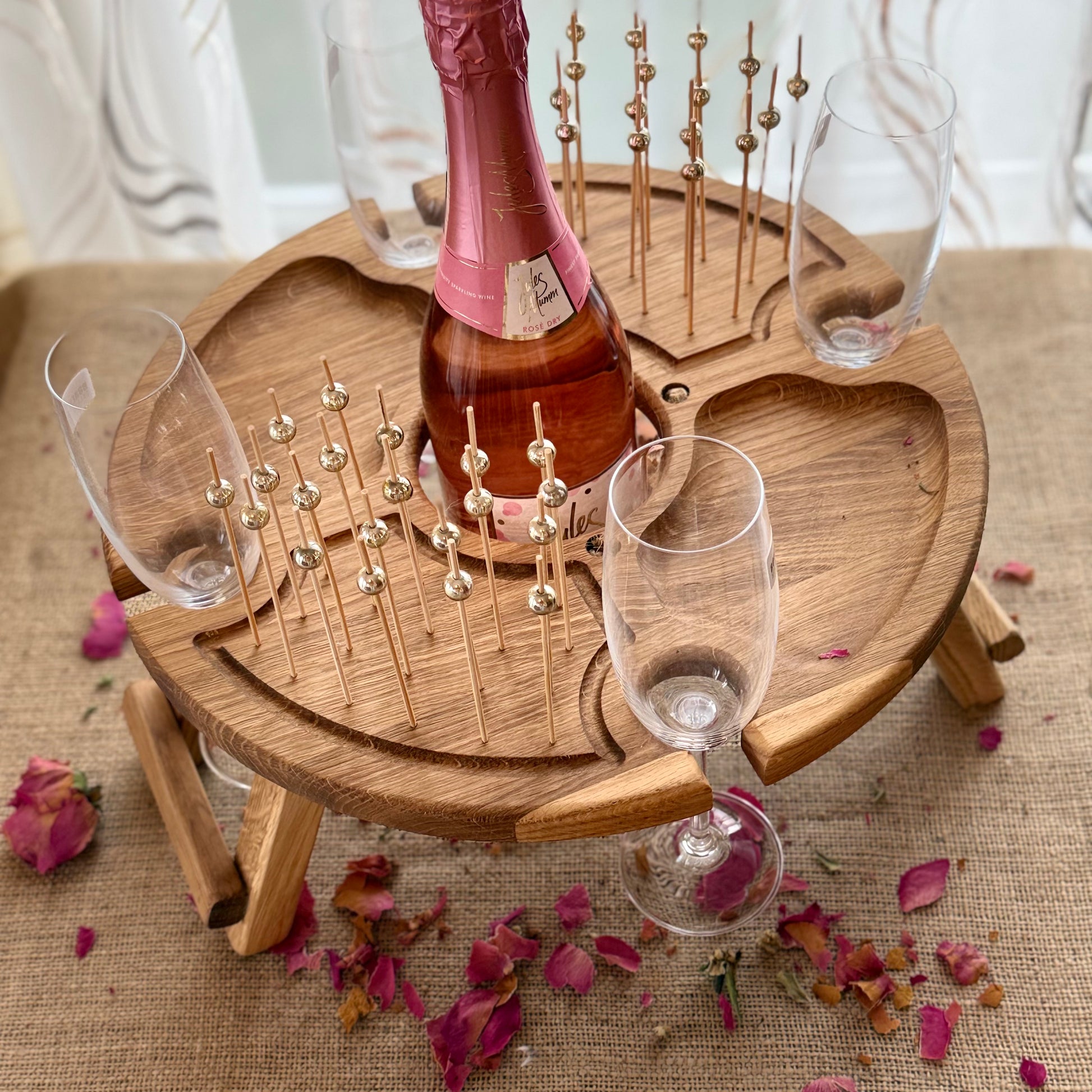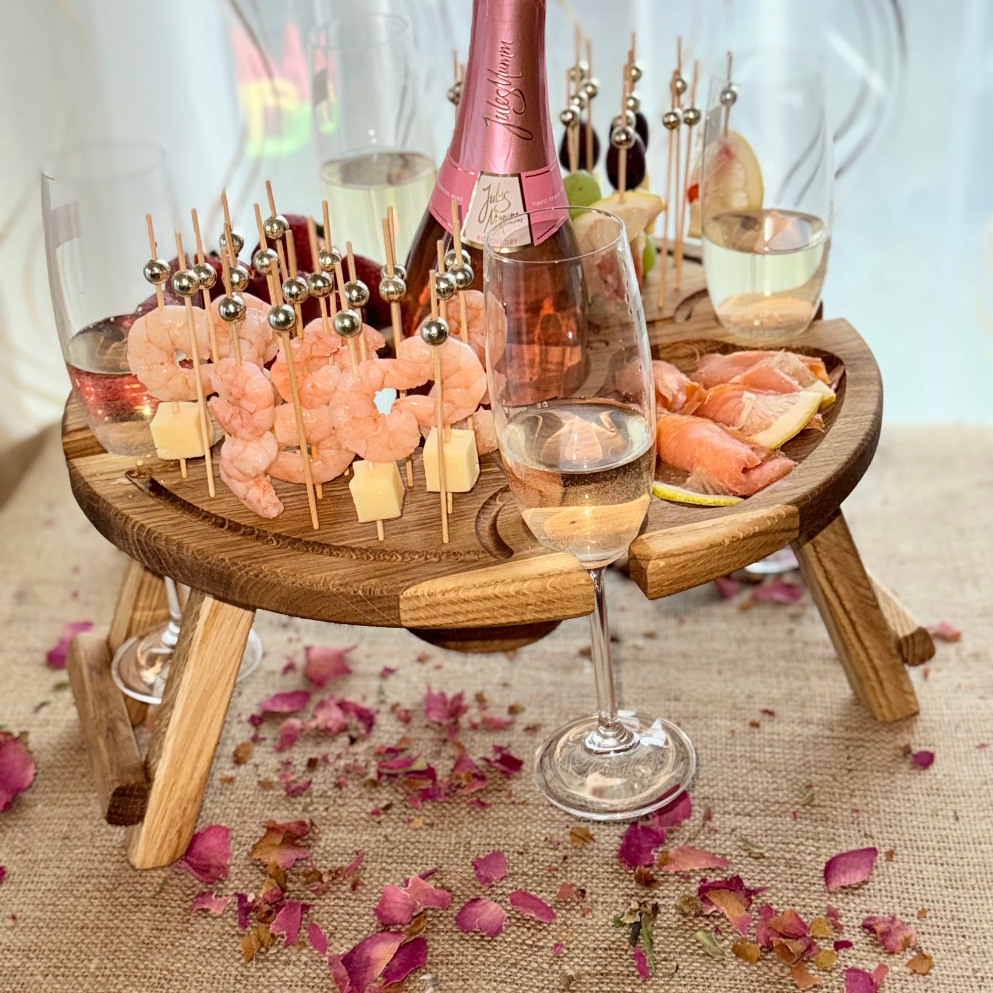 Multifunktionaler Weintisch & Cocktailtisch aus Eichenholz – Klappbares Serviertablett mit Cocktailspießen