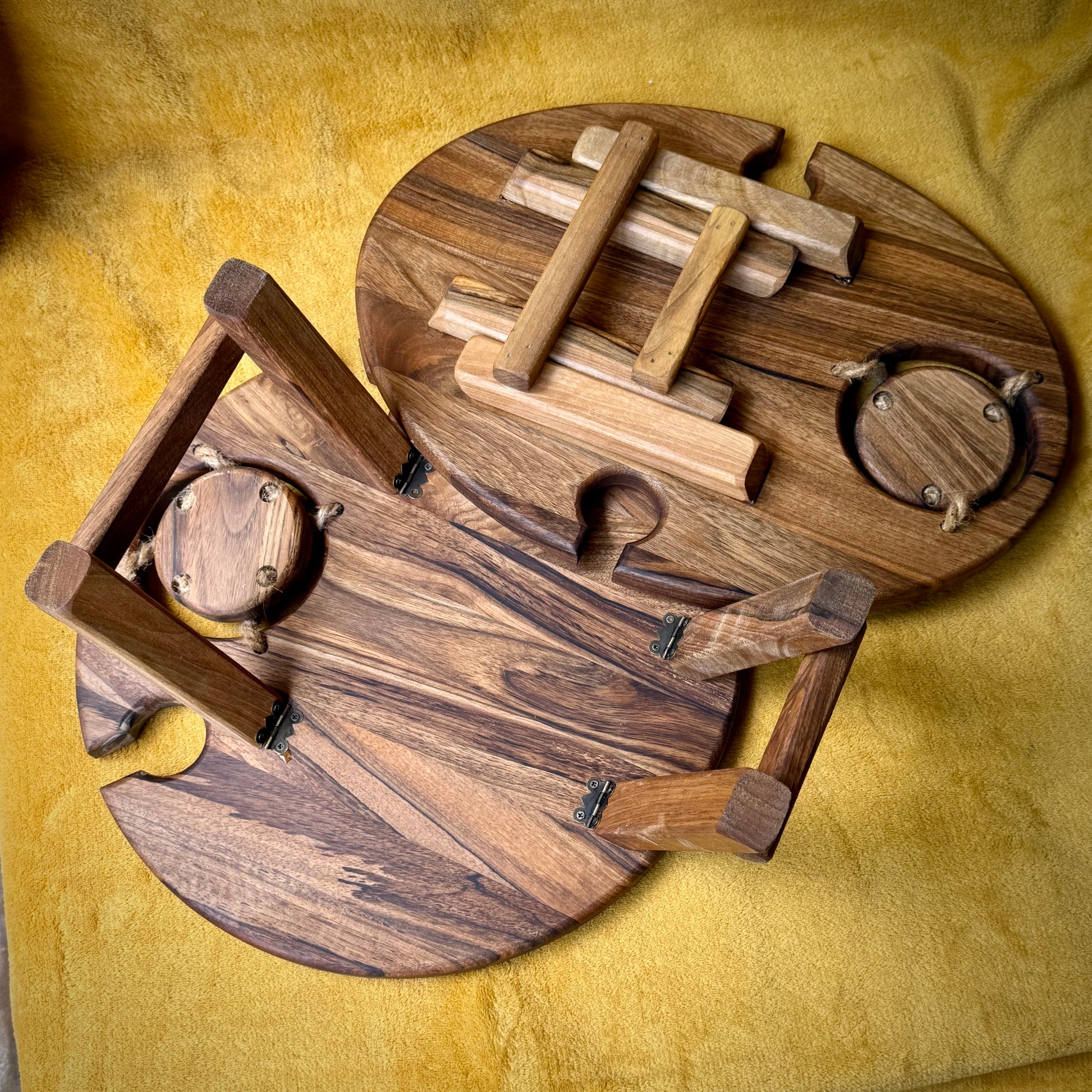Klappbarer Weintisch aus Nussbaum – Handgefertigtes Serviertablett für Picknick & Zuhause